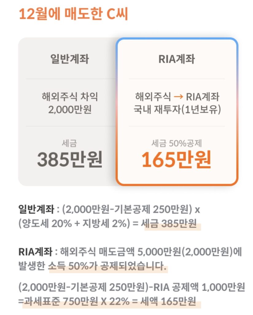- 타 계좌 순매수 주의: RIA 외 다른 계좌(연금·ISA 포함)에서 해외 주식을 순매수하면, 그 금액만큼 RIA 세제 혜택 공제 비율이 줄어들 수 있습니다.