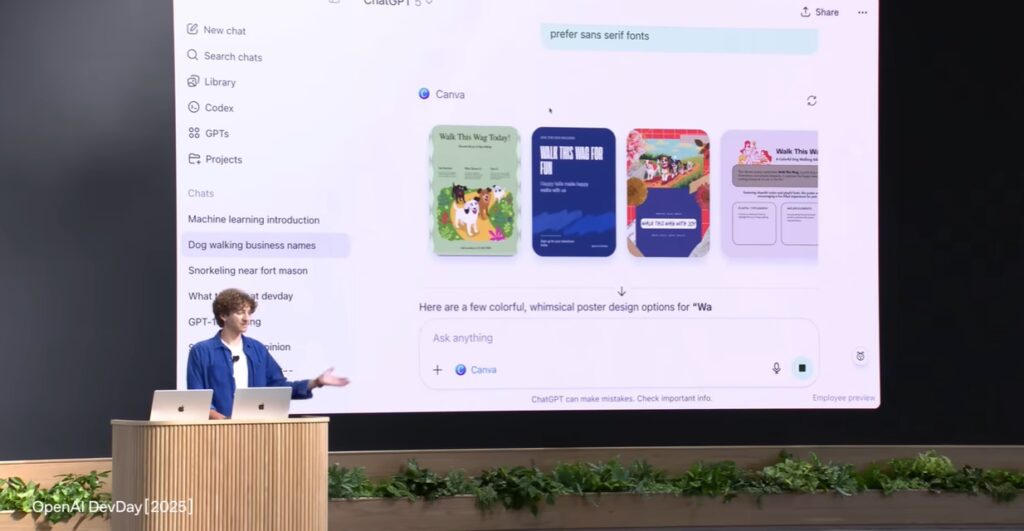 오픈AI DevDay는 오픈AI가 개발자들을 대상으로 매년(또는 주요 업데이트 시) 개최하는 개발자 컨퍼런스로 새로운 AI 모델과 도구를 발표하고 개발자들이 소통하는 자리입니다. 2025년 행사는 10월 6일 샌프란시스코에서 열렸으며, 수천 명의 개발자들이 모여 혁신적인 업데이트를 미리 체험했습니다. 특히 주목 받은 것은 ‘ChatGPT 내 앱(Apps in ChatGPT)’로 사용자는 챗gpt 대화창 안에서 Spotify, Zillow, Canva 등 외부 서비스를 직접 활용할 수 있게 되었습니다. 아래에서 챗gpt와 연동된 7개 앱에 대해 좀 더 자세히 알아보도록 하겠습니다.