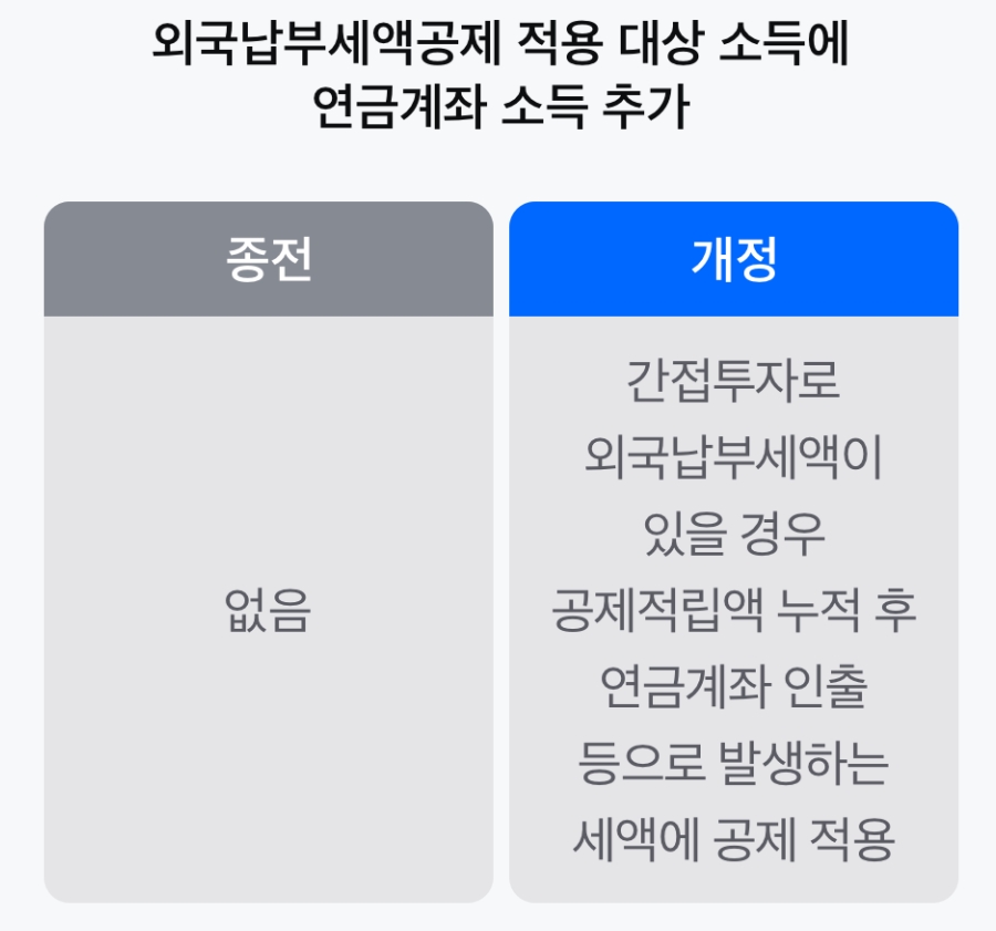 2) 연금계좌 세액공제 한도 유지 및 외국납부세액공제 적용